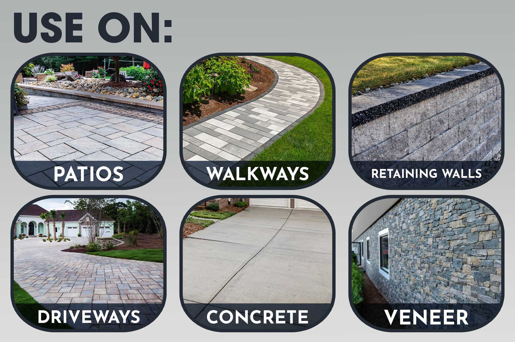 - Patios, walkways, driveways & walls